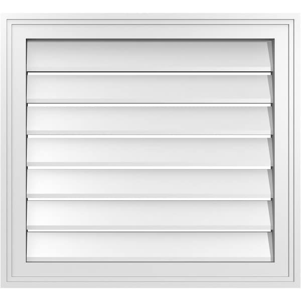 Vertical Surface Mount PVC Gable Vent: Functional, w/ 2"W x 1-1/2"P Brickmould Frame, 24"W x 22"H