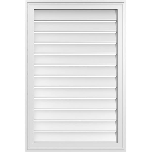 Vertical Surface Mount PVC Gable Vent: Functional, w/ 2"W x 1-1/2"P Brickmould Frame, 24"W x 36"H