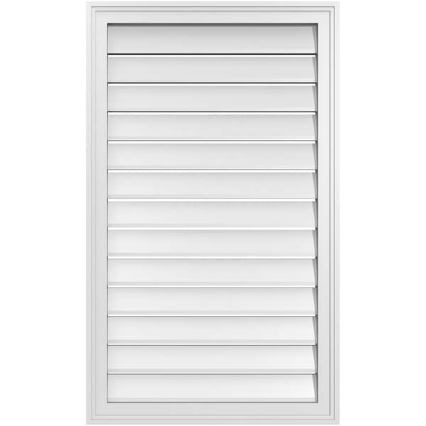 Vertical Surface Mount PVC Gable Vent: Functional, w/ 2"W x 1-1/2"P Brickmould Frame, 24"W x 40"H