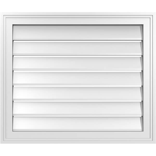 Vertical Surface Mount PVC Gable Vent: Functional, w/ 2"W x 1-1/2"P Brickmould Frame, 26"W x 22"H