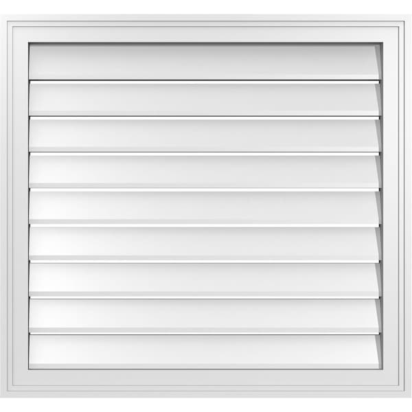 Vertical Surface Mount PVC Gable Vent: Functional, w/ 2"W x 1-1/2"P Brickmould Frame, 30"W x 28"H