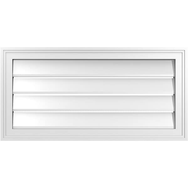 Vertical Surface Mount PVC Gable Vent: Functional, w/ 2"W x 1-1/2"P Brickmould Frame, 32"W x 16"H
