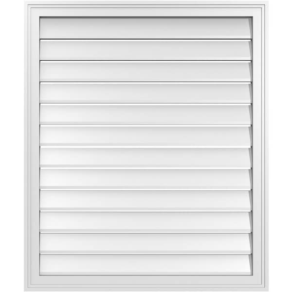 Vertical Surface Mount PVC Gable Vent: Functional, w/ 2"W x 1-1/2"P Brickmould Frame, 32"W x 38"H