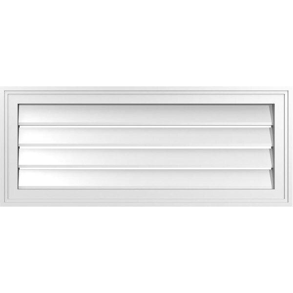 Vertical Surface Mount PVC Gable Vent: Functional, w/ 2"W x 1-1/2"P Brickmould Frame, 34"W x 14"H
