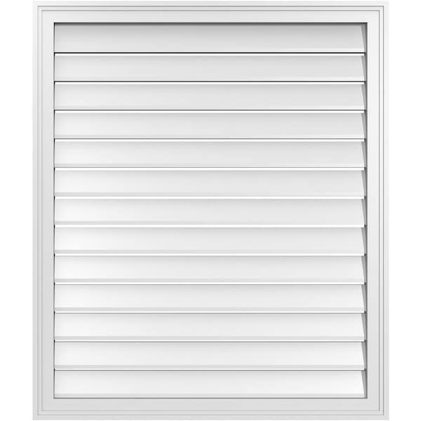 Vertical Surface Mount PVC Gable Vent: Functional, w/ 2"W x 1-1/2"P Brickmould Frame, 34"W x 40"H