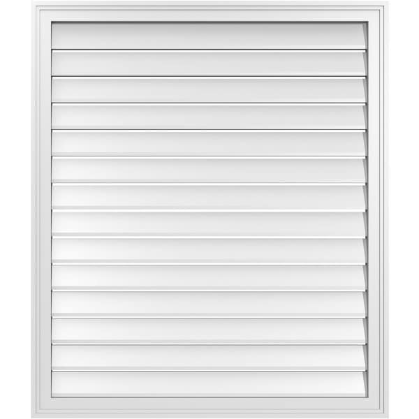 Vertical Surface Mount PVC Gable Vent: Functional, w/ 2"W x 1-1/2"P Brickmould Frame, 36"W x 42"H