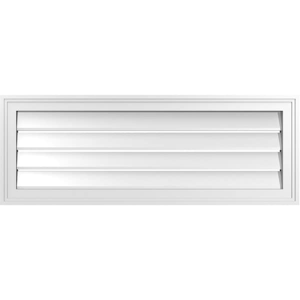 Vertical Surface Mount PVC Gable Vent: Functional, w/ 2"W x 1-1/2"P Brickmould Frame, 38"W x 14"H