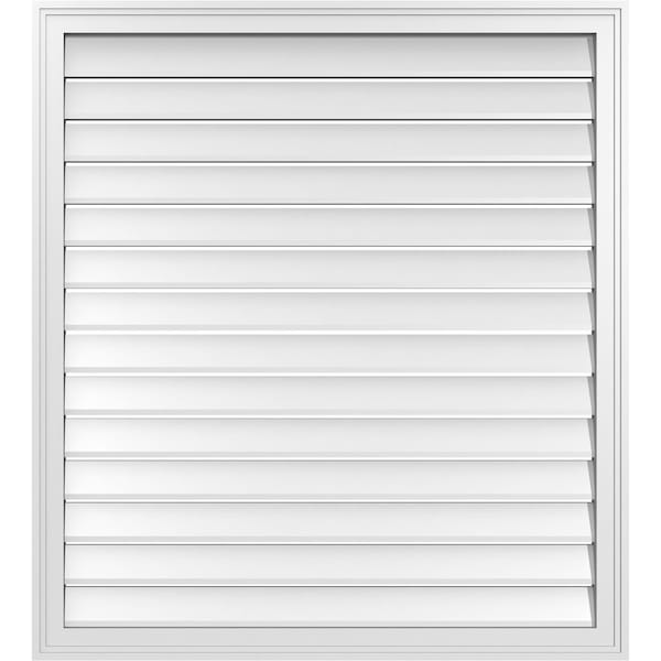 Vertical Surface Mount PVC Gable Vent: Functional, w/ 2"W x 1-1/2"P Brickmould Frame, 38"W x 42"H