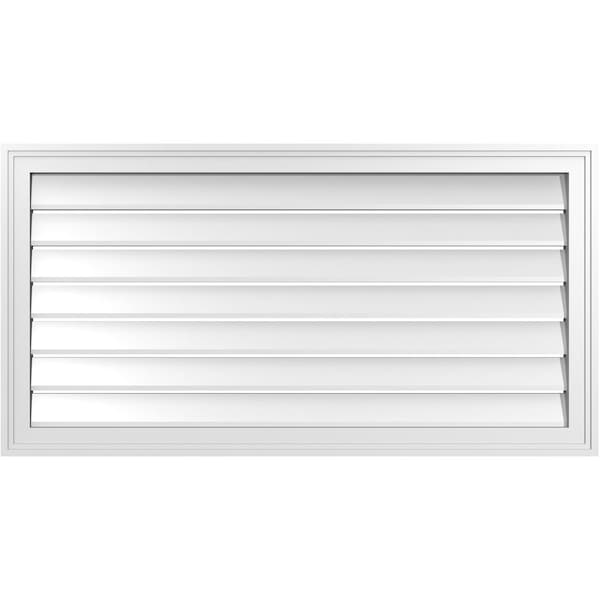 Vertical Surface Mount PVC Gable Vent: Functional, w/ 2"W x 1-1/2"P Brickmould Frame, 42"W x 22"H