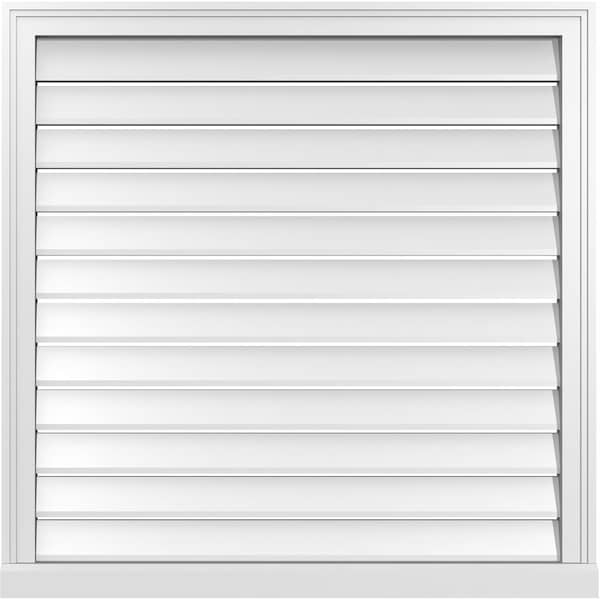Vertical Surface Mount PVC Gable Vent: Functional, w/ 2"W x 2"P Brickmould Sill Frame, 36"W x 36"H