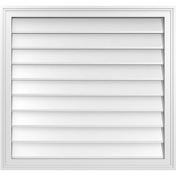 Vertical Surface Mount PVC Gable Vnt: Non-Functional, w/2"W x 1-1/2"H, Brickmould Frame, 32"W x 30"H