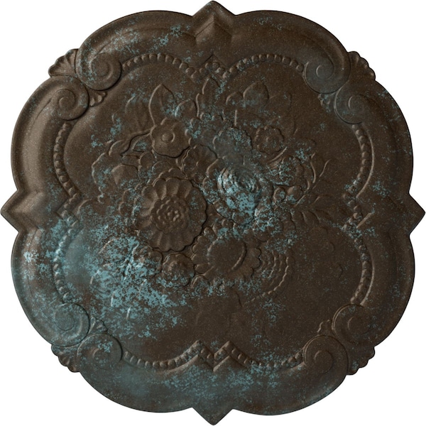 Victorian Ceiling Medallion, Hand-Painted Bronze Blue Patina, 24 3/8"OD x 1"P