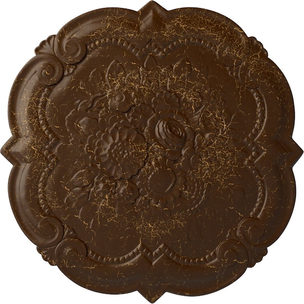 Victorian Ceiling Medallion, Hand-Painted Root Beer Crackle, 24 3/8"OD x 1"P