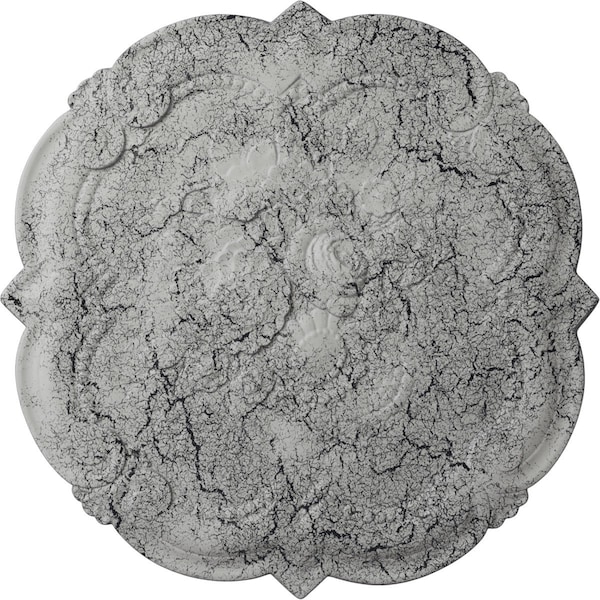 Victorian Ceiling Medallion, Hand-Painted Ultra Pure White Crackle, 24 3/8"OD x 1"P