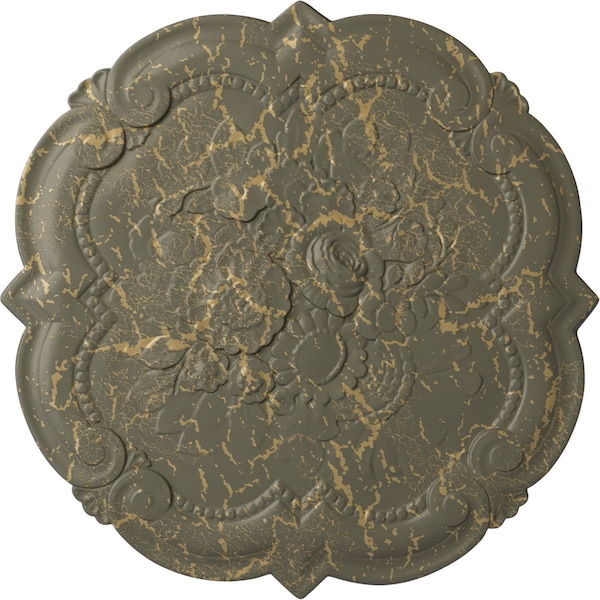 Victorian Ceiling Medallion, Hand-Painted Witch Hazel Crackle, 24 3/8"OD x 1"P