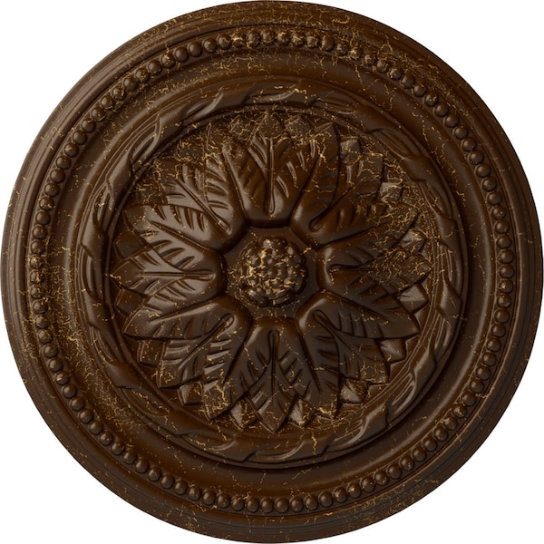 Wigan Ceiling Medallion, Hand-Painted Root Beer Crackle, 16"OD x 2 1/4"P