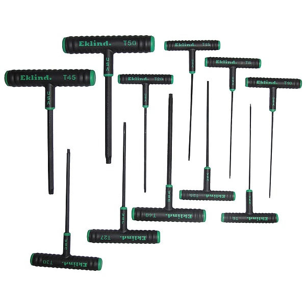 EKLIND's 68691 11 Piece Torx? T-Shape Torx? Key Set is the ideal choice for those who need to tackle fasteners with a T-shaped hex head. This set comes in a plastic case that keeps your tools organized and easy to access. It comprises standard hex keys that can be used across an extensive range of applications and product categories. The alloy steel blades are corrosion resistant, so they last longer and provide greater durability. Their black oxide finish gives them better resistance against rust and other environmental factors. EKLIND's 68691 11 Piece Torx? T-Shape Torx? Key Set is perfect for tackling common fasteners such as screws, bolts, nuts, studs and pins.