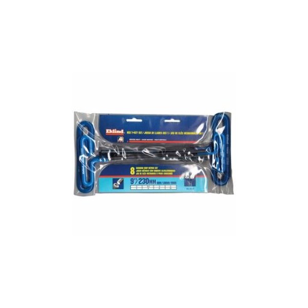 Cushion Grip Hex T-Key Sets, 8 per pouch, Hex Tip, Metric, 9 in Handle