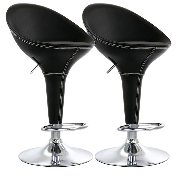 2 Piece Adjustable Plastic Bar Stool in Black with Chrome Base