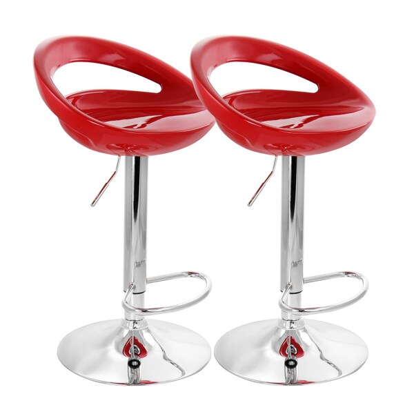 Add a stylish touch to your home bar or kitchen counters with the Elama 2 Piece Retro Adjustable Bar Stool in Red with Chrome Base. This set of chairs is uniquely shaped to form to your lower back while seated. Swivel base is perfect for movability and adjustable height allows you to customize these stools to whatever height is most comfortable and convenient for your home counters. No arms allow you to seat the stools next to each other without worrying about lack of space. These adjustable chairs are crafted from quality metal and thick plastic for a strong and long lasting design.