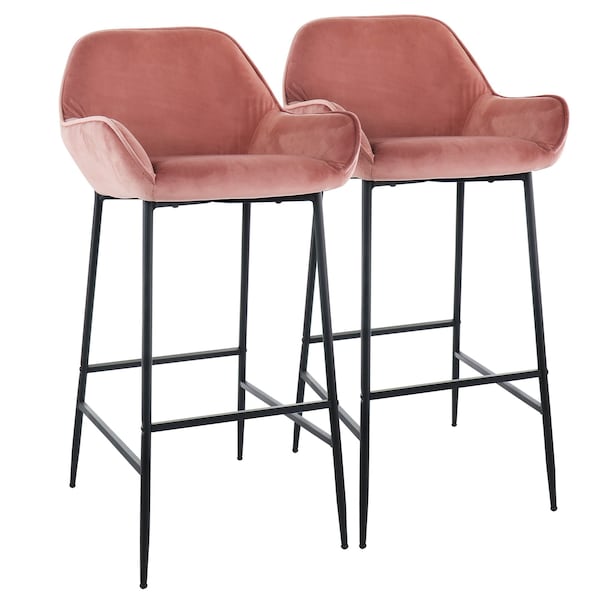 2 Piece Velvet Bar Stool in Blush Pink with Black Legs