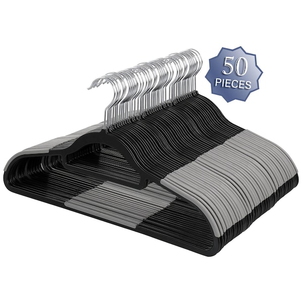 50 Piece Plastic Non Slip Hanger in Black and Gray