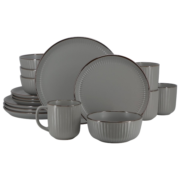 Leo 16 Piece Stoneware Dinnerware Set In Dark Gray
