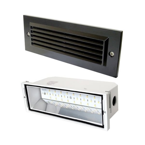 ELCO's Trogon Collection consists of diecast wet location LED Brick Lights which are offered in 5.4W or 12W, 3000K, 120V with an Angled Louver, Open Frame Lens or Grill Faceplate in a sharp White, Black or Bronze powder coated finish.