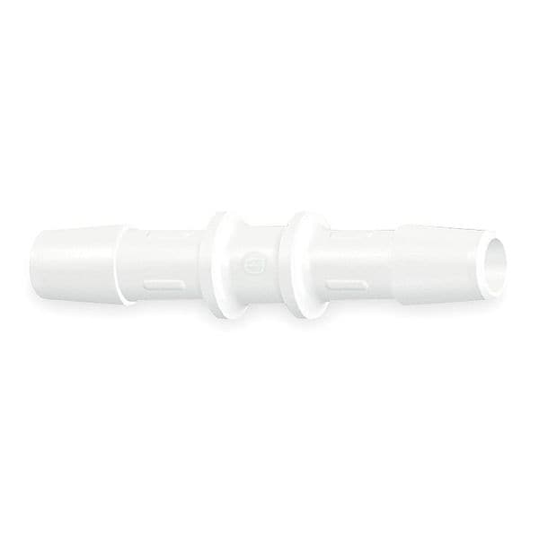Barbed Fitting Coupling, Fitting Side A Connection Type Barbed, Fitting Side B Connection Type Barbed, Fitting Side A Tube Inner Diameter 3/8 in, Fitting Side B Tube Inner Diameter 3/8 in, Barb Style Single Barb, Fitting Material Polypropylene, Specific Fitting Shape Straight Connector, Application Chemical, Pharmaceutical, Maximum Operating Pressure 125 psi @ 70 Degrees F, Maximum Operating Temperature 150 Degrees F, Standards RoHS, Color White, Minimum Operating Temperature 9 Degrees F