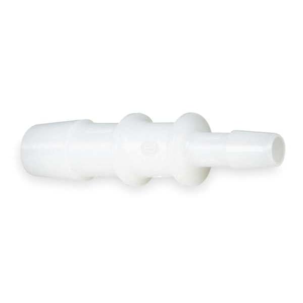 Barbed Fitting Coupling, Fitting Side A Connection Type Barbed, Fitting Side B Connection Type Barbed, Fitting Side A Tube Inner Diameter 1/2 in, Fitting Side B Tube Inner Diameter 1/4 in, Barb Style Single Barb, Fitting Material HDPE, Specific Fitting Shape Straight Reducing Connector, Application Medical, Maximum Operating Pressure 260 psi, Maximum Operating Temperature 226 Degrees F, Standards FDA 21 CFR 177.1520, RoHS, USP Class VI, Color White, Minimum Operating Temperature 80 Degrees F