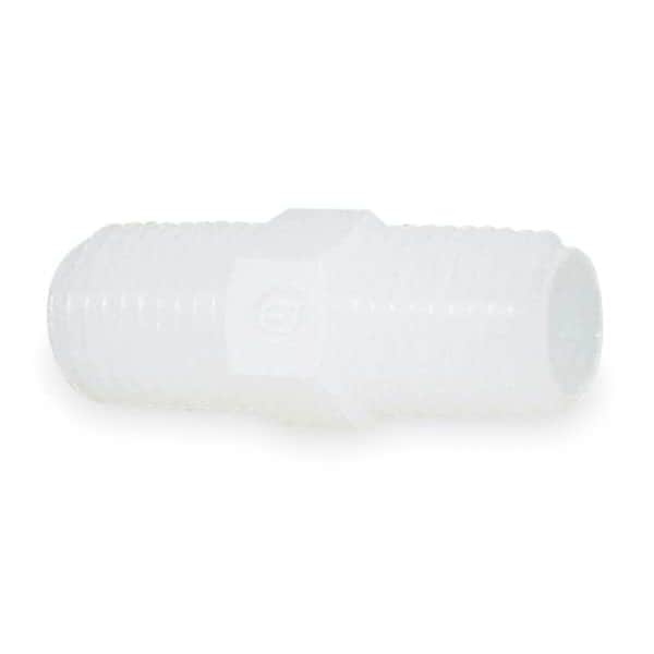 Barbed Fitting Coupling, Fitting Side A Connection Type Barbed, Fitting Side B Connection Type Barbed, Fitting Side A Tube Inner Diameter 1/4 in, Fitting Side B Tube Inner Diameter 1/4 in, Barb Style Single Barb, Fitting Material HDPE, Specific Fitting Shape Straight Connector, Application Medical, Maximum Operating Pressure 260 psi, Maximum Operating Temperature 226 Degrees F, Standards FDA 21 CFR 177.1520, RoHS, USP Class VI, Color White, Minimum Operating Temperature 80 Degrees F