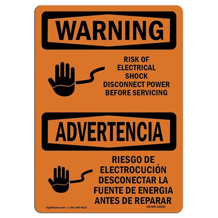 OSHA Warning Sign, 10" Height, 14" Width, Aluminum, Risk Of Electrical Shock Disconnect, Landscape