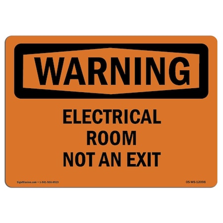 Safety Sign, OSHA WARNING, 3.5" Height, 5" Width, Electrical Room Not An Exit, Landscape