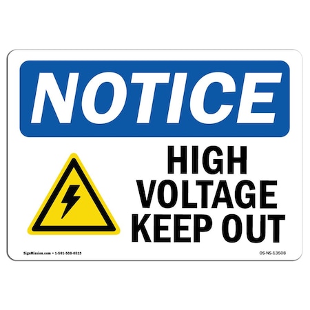 OSHA Notice Sign, 18" H, 24" W, Rigid Plastic, High Voltage Keep Out Sign With Symbol, Landscape