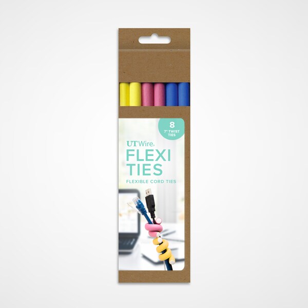 Flexi Ties Cable Wrap- 7"- (Blue/Pink/Yellow)- 6 Pack