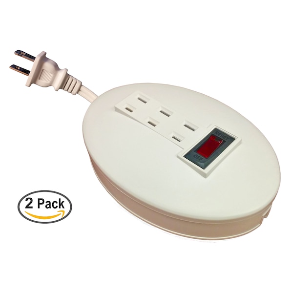 This the 3 power outlet cord reel is great for small setups with limited space, lamps, tv's, stereos in permanent and temporary applications. With 5 feet of extension cord and the ability to neatly coil the excess within the unit, the portable cord reel keeps tangled messy cords to a minimum. Pack of 2.