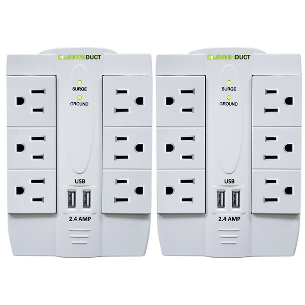 Space saving and functional, our 6 power outlet wall tap turns your standard duplex receptacle into a multi-outlet surge protector. The swivel design allows you to plug your devices in different angles up to 180° range, which can save space and help keep a tidy area. Pack of 2.