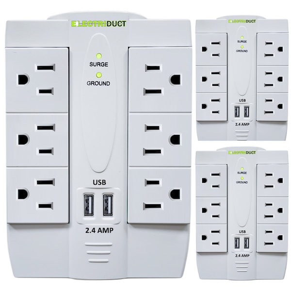 Space saving and functional, our 6 power outlet wall tap turns your standard duplex receptacle into a multi-outlet surge protector. The swivel design allows you to plug your devices in different angles up to 180° range, which can save space and help keep a tidy area. Pack of 3.