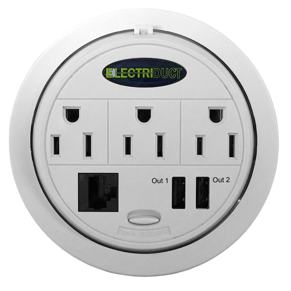 Outlet Tap, USB, Cat5e, 5-15R, 5-15P, 3 to 25 ft., White