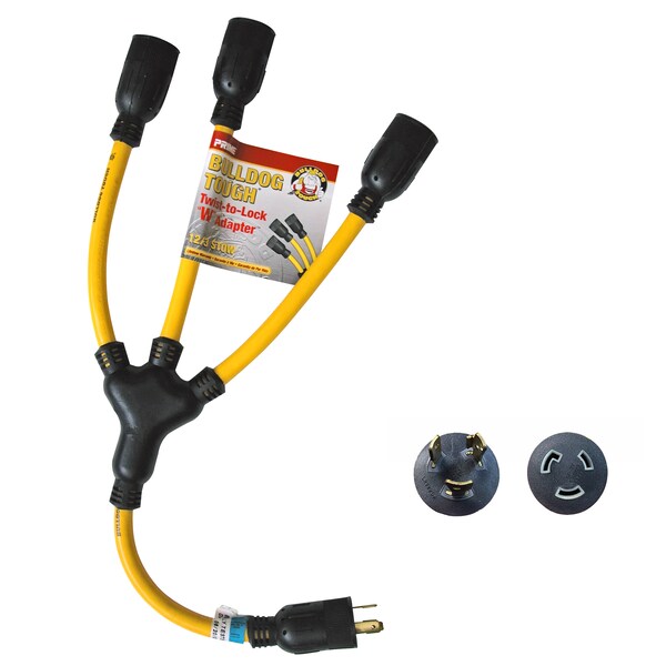 Applications for this Twist to Lock “W” Adapter are to provide an indoor and outdoor cord for drills, circular saws, wet/dry vacs, hammer drills, lawn mowers, air compressors and other power tools. Ideal for use in construction and industrial appliances where durability and extra protection is needed.