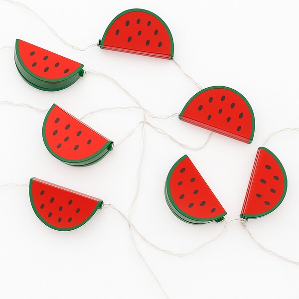 Brighten up your space with these playful 10 LED Watermelon String Lights in warm white. Perfect for summer parties, tropical-themed dcor or adding a fun twist to your everyday lighting, these string lights feature cute watermelon shapes that emit a soft, inviting glow. Ideal for draping around windows, lining stair rails, accenting trees, or creating a whimsical vibe on gazebos and patios, these lights are lightweight and easy to hang. Whether you're decorating for the holidays or adding charm to your everyday setup, this versatile string light adds just the right touch of fruity fun to any setting indoors or out.