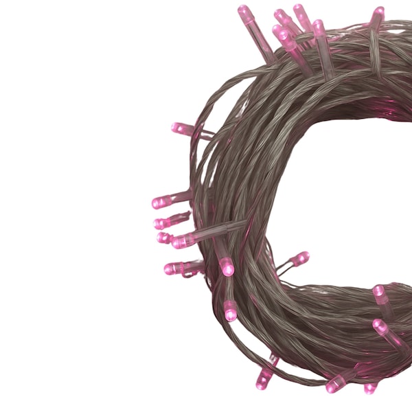 Transform your space into a calming oasis or festive celebration with these 100 LED Pink String Lights. Designed with a sleek black wire for subtle placement, the 32-foot strand casts a radiant Pink glow perfect for enhancing your dcor year-round With 8 dynamic lighting modes-including steady on, twinkle, and slow fade-you can customize the ambiance to suit any occasion. Crafted for both indoor and outdoor use, these lights are perfect for decorating during Halloween, parties, weddings, or adding a whimsical touch to your home decor. The energy-efficient LEDs consume up to 70% less power than traditional incandescent bulbs and remain cool to the touch, ensuring safety and longevity.