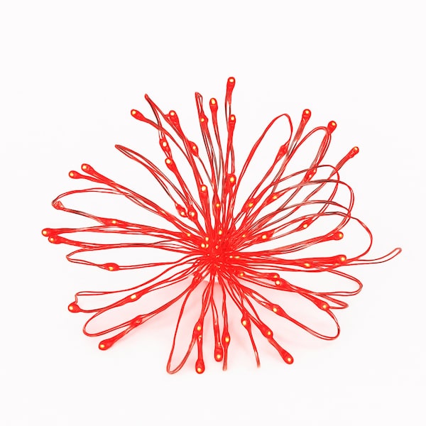 Illuminate your space with Elegani's 100 LED Silver Copper Fairy String Lights, featuring Red micro LEDs spaced 4 inches apart on a 33-foot flexible silver-coated copper wire. These plug-in lights provide a steady 360° viewing angle, ensuring ambient illumination that enhances any setting. The durable and bendable wire allows for creative installations, making them ideal for decorating bedrooms, parties, weddings, or holiday displays. Suitable for both indoor and outdoor use, these lights add a touch of elegance and warmth to your dcor