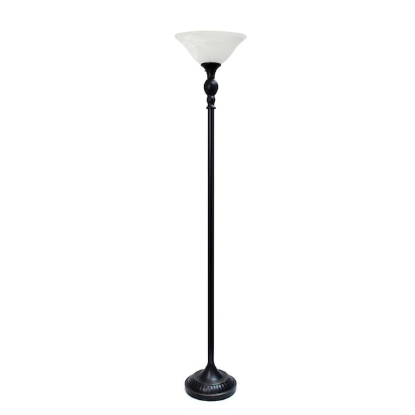Light up your bedroom, office, foyer or living room with this elegant yet affordable 1 light torchiere floor lamp. It features a stunning restoration bronze finish and a marbelized white glass shade to complete the look.