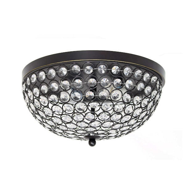 Bejewel your home with this gorgeous two (2) light Elipse crystal ceiling flush mount. It features a beautiful Restoration Bronze finish and crystal tiled shade. This fabulously chic design will be the envy of all your friends! We believe that lighting is like jewelry for your home. Our products will help to enhance your room with elegance and sophistication.