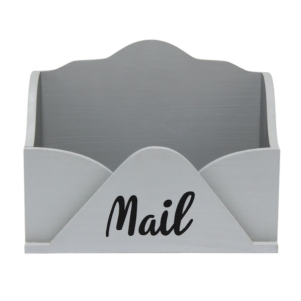 This lovely wooden single slot mail holder is designed perfectly with practicality in mind A beautifully scripted Mail in black text lays center of the front panel, which is notably shorter than the curvy back panel for better accessibility to your letters, bills, documents and more