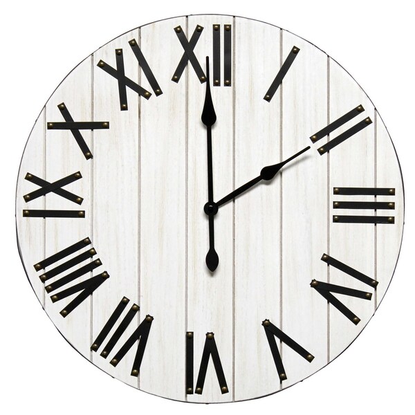 Handsome 21" Rustic Farmhouse Wood Wall Clock, White Wash (Discontinued)