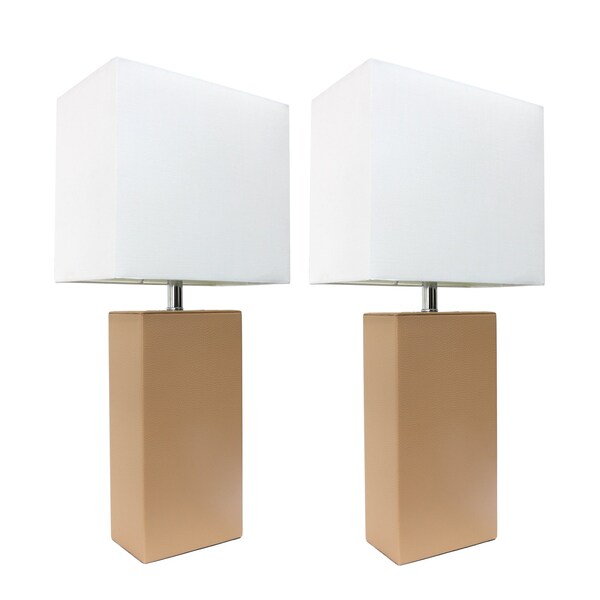 Modern Leather Table Lamps with White Fabric Shades, Beige, PK 2 (Discontinued)