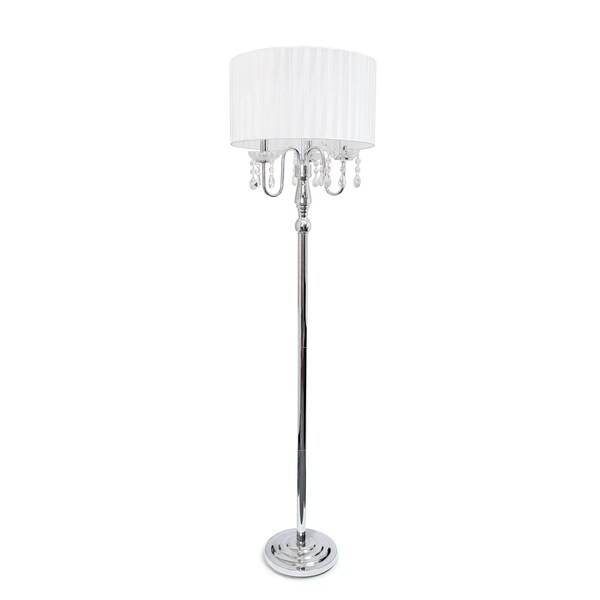 Trendy Romantic Sheer Shade Floor Lamp with Hanging Crystals, White (Discontinued)