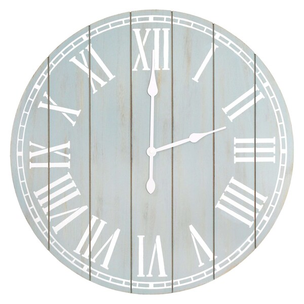 Wood Plank 23" Large Rustic Coastal Wall Clock, Light Blue Wash (Discontinued)